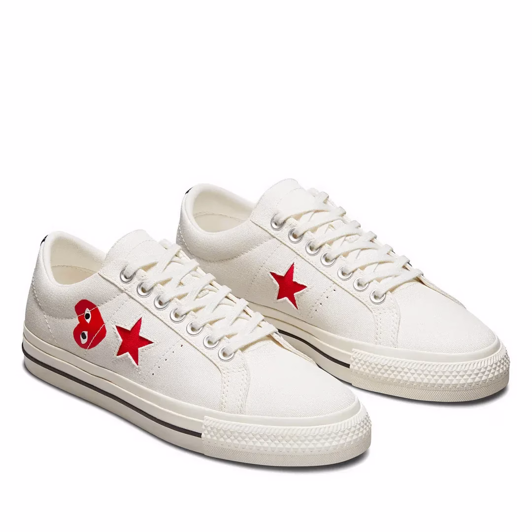 Upload a bold assertion for your sneaker series with the Comme Des Garçons Play x communicate One star. providing the iconic red coronary heart brand from Comme Des Garçons Play, this confined-edition design flawlessly combines fashion-forward streetwear with timeless converse nice. The call Comme Des Garcons meaning “like the boys” in French displays the emblem’s innovative and avant-garde method. This pair gives standout fashion, comfort, and exceptional for any sneaker fanatic.