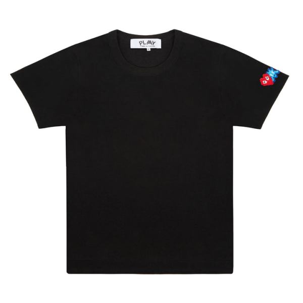 PLAY INVADER T-SHIRT RED AND BLUE SLEEVE EMBLEM (BLACK)
