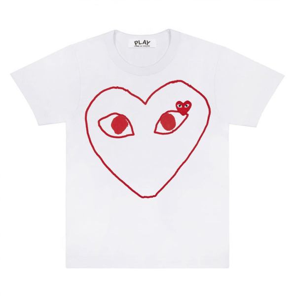 PLAY WHITE T-SHIRT WITH RED OUTLINE HEART